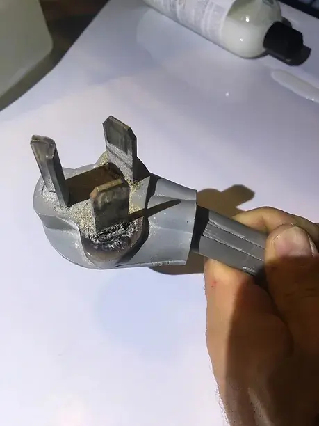 Dryer power cord with heat damage on one of its 3 prongs